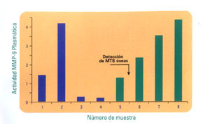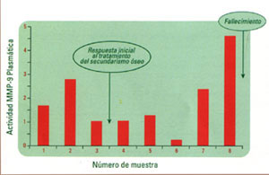 en la actividad circulante de MMP-9, cinco meses antes de realizarse el