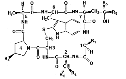 Los valores de dosis letal de las amatoxinas (DL50) se indican en la Tabla 2 y sus estructuras en la Fig. 1.