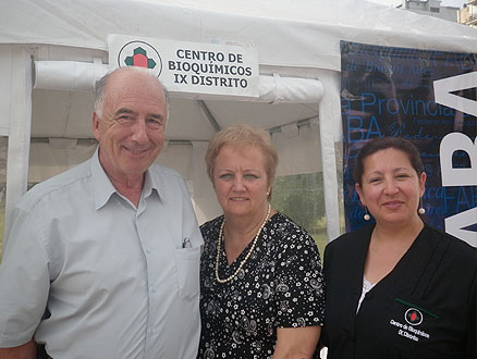 • De izq a der: Dr. Gilberto Landi, presidente del Distrito IX, Dra. Alicia M. Ateca, de la Comisión Caja Ayuda Mutua del Distrito IX, y la Sra. Shirley Carrasco, empleada del Centro de Bioquímicos Distrito IX