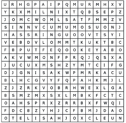 Lo invitamos a encontrar en la sopa de letras las siguientes cinco palabras: