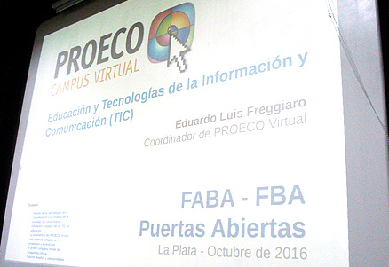 El titular de la FBA presentó a los coordinadores del Proeco, las Dras. Elena Camps y Cristina Cailliat como "colegas con una amplia experiencia en la coordinación de cursos presenciales" y al Dr. Eduardo Freggiaro "quien se encargará de exponer sobre las tecnologías de la información y comunicación y todas sus novedades de aplicación en el programa de educación continua".