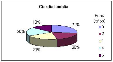 La distribución de los parásitos aislados según las edades que se observa en la serie de gráficos expuestos mas adelante, permite inferir que, durante el período evaluado, Enterobius vermicularis se presenta en todo el rango de edades, mientras que Giardia lamblia llega hasta los 6 años de edad.