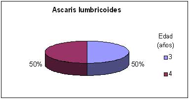 Con respecto a la evaluación de Dientamoeba fragilis y Ascaris lumbricoides, ambos aparecen en el 50% de exámenes positivos, en niños de 3 años y hasta 4 y 7 años de edad. Aquí la profilaxis más recomendada es la aplicación de medidas que permitan controlar el fecalismo.
