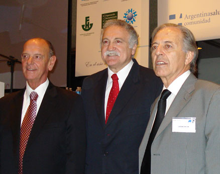 • Dr. Eduardo Cardús, miembro del Consejo Directivo de FECLIBA, Alberto Torres, Marcos Bercovich, presidente y vice de FABA, respectivamentes