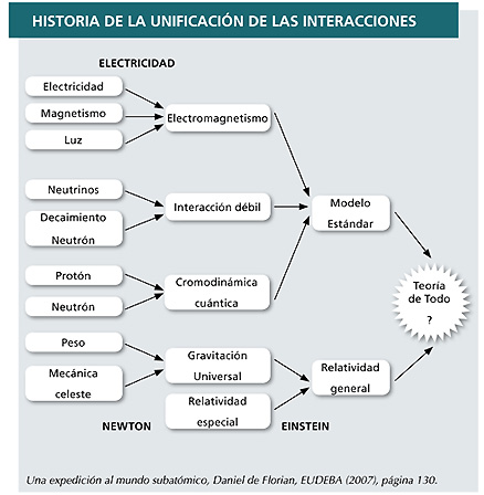 Desde los primeros científicos, la unificación de teorías y experimentos que describen parcialmente el mundo ha sido un propósito perseguido con obsesión no sólo cognitiva sino estética. Copérnico y Kepler unificaron la Tierra con los demás planetas solares. Giordano Bruno unificó el Sol con las estrellas. Galileo y Newton unificaron el movimiento con el reposo. Darwin unificó las especies con un ancestro común. Maxwell y Faraday unificaron la electricidad y el magnetismo.