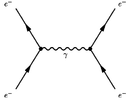 Es como si dos navegantes idénticos sobre botes sin remos, pero lanzados en trayectorias convergentes, quisieran evitar el choque. La maniobra implica que uno de los navegantes debe tomar una pelota, que casualmente está en su bote, y tirársela al otro navegante de modo que, por el newtoniano principio de acción y reacción, cada uno experimente una fuerza lateral que logrará cambiar las trayectorias a divergentes evitando así el choque (ver gráfico). La pelota es la mediadora de la fuerza entre los dos botes. Dado que el fotón no tiene masa, es una pelota que puedo tirar tan lejos como yo quiera; en otras palabras, el alcance de la fuerza electromagnética es infinito”.
