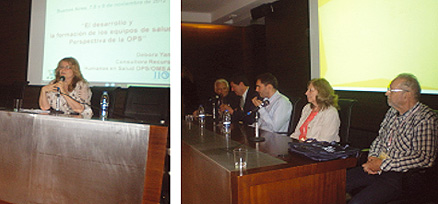 El tema tratado fue “El Desarrollo y la Formación de los Equipos de Salud. Perspectiva de la OPS” a cargo de la Lic. Débora Yanco, Consultora Nacional de Recursos Humanos en Salud - OPS/OMS Argentina, siendo la Moderadora la Dra. María Cristina Cailliat, Mg. en Ciencias del Laboratorio Clínico, Lic. en Farmacia y Bioquímica de la F. de Cs. Ex.- UNLP y Coordinadora Científica del PROECO-FBA.