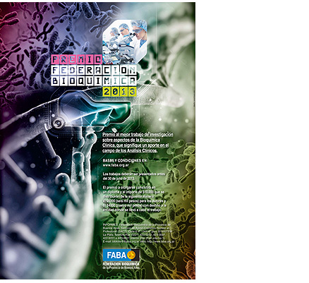 Este año el habitual premio que organiza la Federación Bioquímica de la Provincia de Buenos Aires será co-otorgado con la Fundación Bioquímica Argentina al mejor trabajo de investigación sobre aspectos de la Bioquímica Clínica, que signifique un aporte en el campo de los Análisis Clínicos.