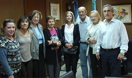 •De izq a der: Lic. Bibiana Campos, asesora de ABIJUBA, Dras. María de los Ángeles Márquez, tesorera, Myrta Toffoli, presidente, Adriana Scocia, revisor de cuentas suplente, Elsa Porro, protesorera, Gabriel Di Bastiano, vicepresidente de FABA, Elba Spacapan, vocal suplente (ABIJUBA) y el Dr. Luis García, presidente de FABA
