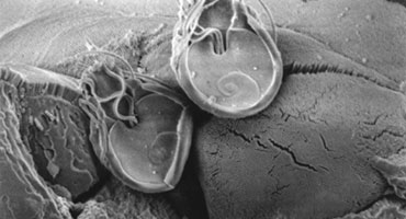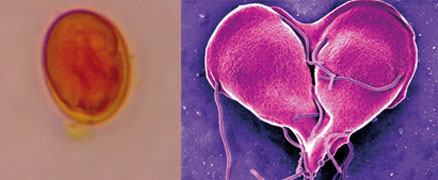 • Izquierda: Quiste de Giardia lamblia. Derecha: Trofozoitos.