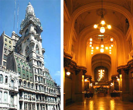 • Izq: Vista exterior del Palacio Barolo. Der: hall central